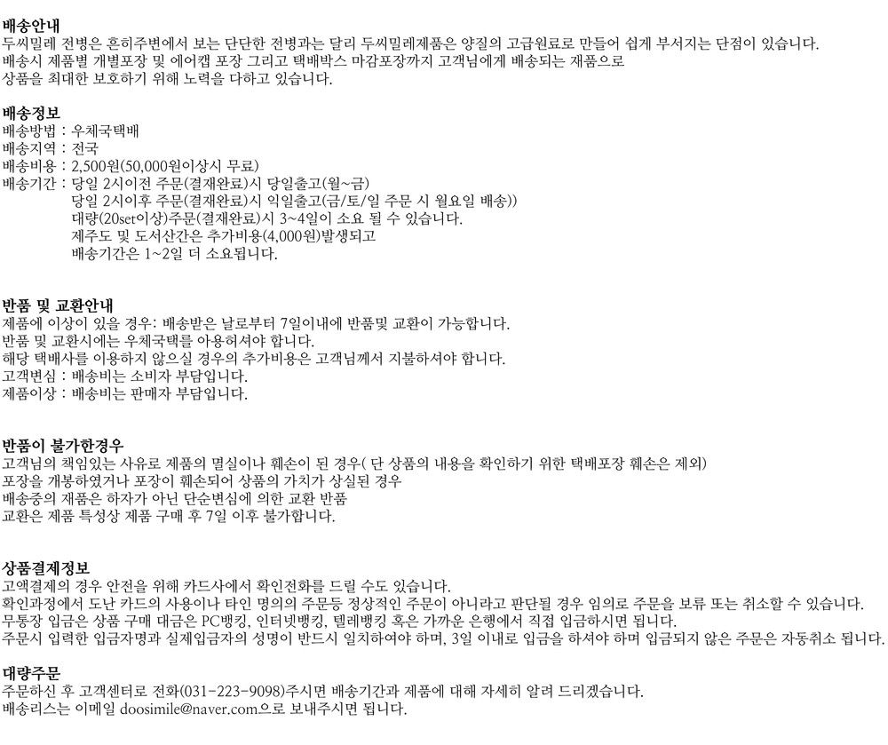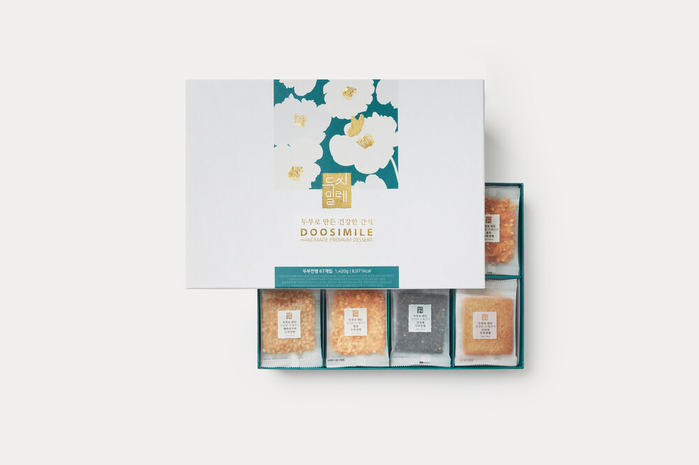 부모님, 은사님, 마음을 전하고 싶은 고마운 분들에게 선물하기 좋은 두씨밀레 프리미엄 두부전병 선물세트는 하나하나 정성을 담아 수작업으로 만들어지고 있으며 넉넉하게 담아낸 선물세트 입니다. 다양한 맛의 두부전병을 고급스러운 박스에 포장하여 쇼핑백과 함께 발송 해드립니다.