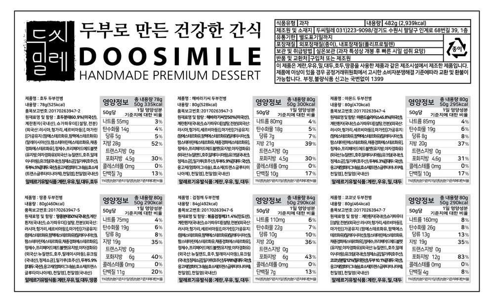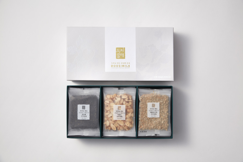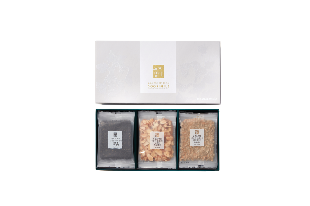 감사한 마음 가득 담아 고마운 분들께 선물하기 좋은 두씨밀레 두부전병 마음세트는 물 한방울 넣지 않고 계란흰자와 신선한 견과류, 국산두부 등 좋은 재료만을 엄선하여 하나하나 만들어집니다. 견과류 본연의 맛에 충실하여 담백하고 고소한 맛은 물론이고 두씨밀레만의 바삭한 식감이 맛을 더욱 풍성하게 만들어 드릴 것 입니다. 영양이 듬뿍 들어간 두부전병은 남녀노소 누구에게나 건강한 간식입니다.